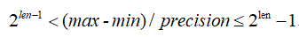 其中max和min分别表示变量的最大和最小的范围,precision表示的精度,若小数点保留5位小数,则precision = 10-5。