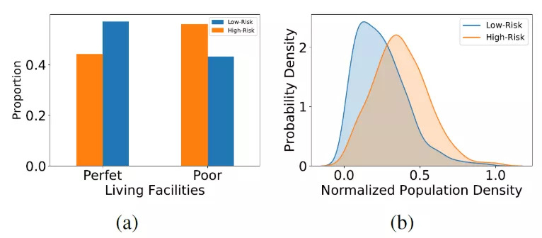 新冠肺炎已经在世界范围内广泛传播,严重影响着人们的日常生活。面对新冠肺炎,人为干预的空间隔离手段(如限制出行或集中隔离)已经被证明其有效性。但是,确诊病例的统计往往是滞后且粗粒度的,比如对于尚未确诊的患者他们的传染过程并没有被考虑,因此直接通过各区域的确诊病例建立时空预测模型的方法效果不佳。基于此,研究人员提出了一种跨城市迁移的新冠肺炎高危社区发现框架,该框架能够从人类移动数据与区域特征对地块的隐式传播性进行建模,并能够将在疫情爆发的源城市中学习到的知识迁移到疫情未爆发目标城市,用于当地高危社区的检测。经过大量的实验证实,该框架在城市高危风险社区早期检测问题上非常有效。