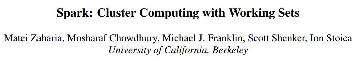 分享一篇论文:Zaharia M, Chowdhury M, Franklin M J, et al. Spark: cluster computing with working sets[J]. HotCloud, 2010, 10: 10-10.论文下载链接:http://pan.baidu.com/s/1bo7EnQR这篇论文提出了大名鼎鼎的Spark,一种分布式计算平台。虽然年代久远,但是...