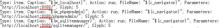 重启wamp,就可以生效了。但是“Localhost”、“phpMyAdmin”、“SQLiteManager”,你可以点击打开看到依旧是默认的80端口。找到wamp安装目录下的wampmanager.tpl文件,记事本打开: