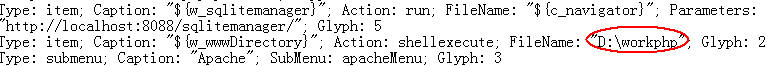 在D:/workphp目录下随便建一个txt文件,写点内容,重启Apache即在http://localhost:8088中看到,txt的内容。但是www目录依旧指向的是默认位置。这就需要修改wamp安装目录下的wampmanager.tpl和wampmanager.ini文件。