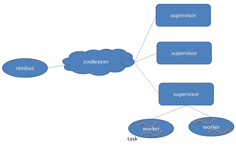 Task:worker中每一个spout/bolt的线程称为一个task. 在storm0.8之后,task不再与物理线程对应,同一个spout/bolt的task可能会共享一个物理线程,该线程称为executor。