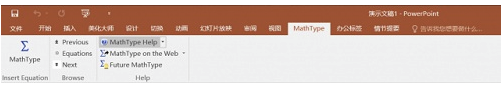 PowerPoint 2016兼容Mathtype方法与Word 2016不同,具体按下图所示的布置操作: