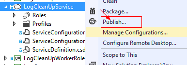 双击Service下面对应的WorkerRole/WebRole,下图中,LogCleanUpService下包含一个Role,LogCleanUpWorkerRole