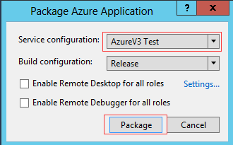 弹出的框中,选择服务配置文件,点击Package按钮。