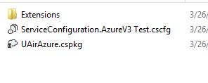 打包成功后,会自动弹出一个文件浏览窗口,一般会包含三个文件,cspkg格式文件为程序包,cscfg为配置文件,extensions文件夹(里面似乎没有任何东西)