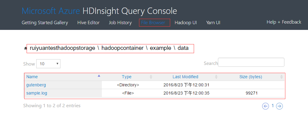 (3)3-6行的代码表示使用example/data/下的所有文件创建一个外部表log4jLogs,表具有7个不同的字段。我们可以使用Hadoop的控制台查看此文件夹,如下图所示。该文件夹下包含一个文件夹和一个目录。