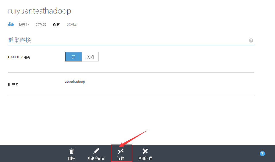 1、通过Azure Portal,进入创建的Hadoop,点击下方的查询控制台按钮,如下所示。