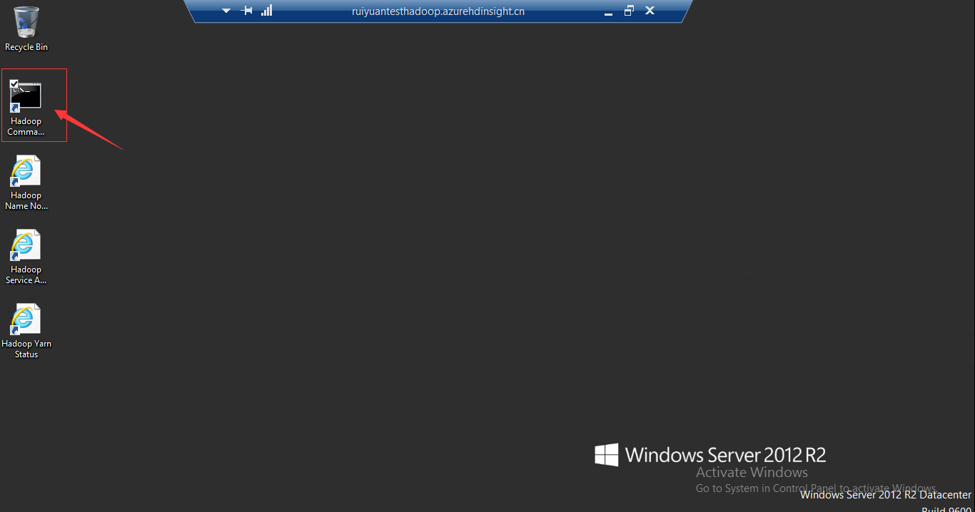 4、进入远程连接桌面如下图所示。桌面上有三个快捷方式。点击Hadoop Command Line图标