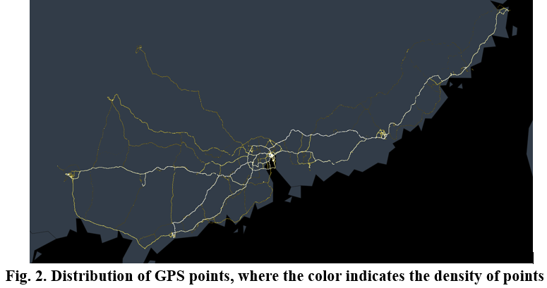 This trajectory dataset was collected from 14 delivery trucks of JD Logistics in the period of Apr. 1 to Jun. 20, 2020. The main routes of these trucks are commuting between Maoming Distribution Center and Guangzhou Distribution Center. The total number of GPS points is about 7.47 million, and the total distance of the trajectories reaches to 0.96 million kilometers.