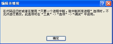 在VS2010环境下,当程序处于调试运行状态时,编辑代码会出现下图提示框: