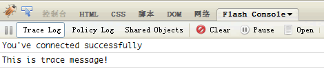 Flashbug使用方法非常简单,通过Firefox“工具”栏,或者点击“状态栏”右侧甲壳虫图标打开Firebug窗口,点击切换到“Flash Console”标签,就可以看到网页Flash的trace输出信息,还有Flash请求策略文件(crossdomain.xml)的过程,以及Flash使用Shared Objects(在Flash上使用的一种类似Cookie的对象)数据。如下图: