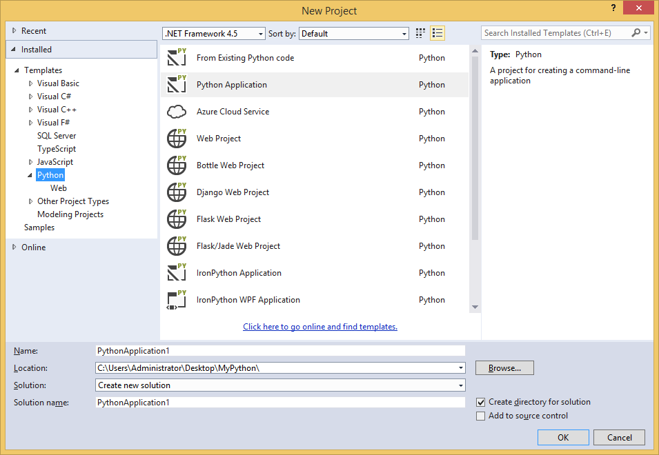 EPDFree免费版无法进行python调试,而平常我也经常用Visual Studio进行开发。因此打算使用Visual Studio来取代EPDFree.安装VS Python工具包。若第一次使用VS进行python开发,需要安装Python工具包。打开VS 2013,file-》new-》project-》Python,若支持Python,则会显示如下图,若不支持,则会显示需要你安装pyth...